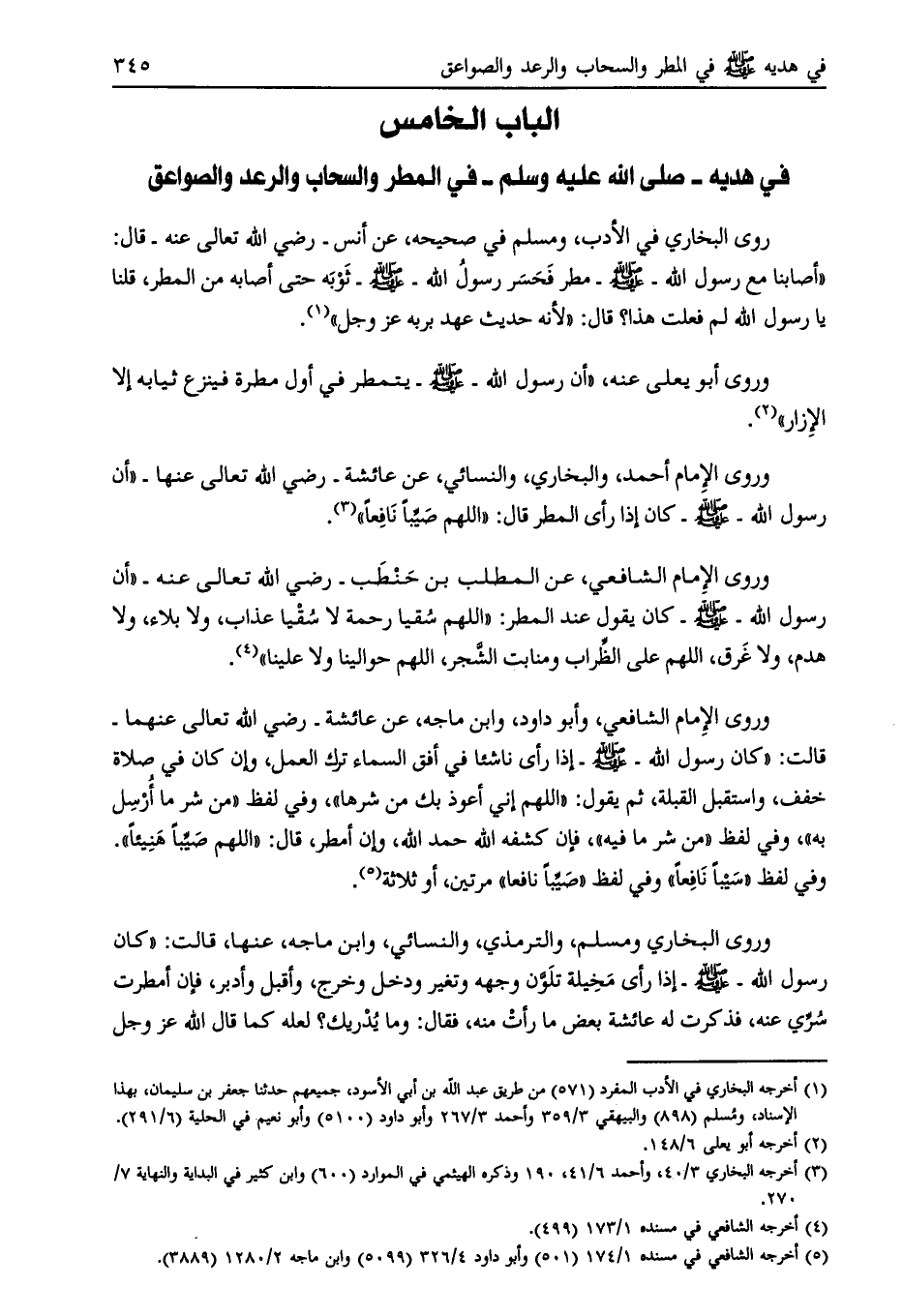 الباب الخامس في هديه- صلى الله عليه وسلّم- في المطر والسحاب والرعد والصواعق