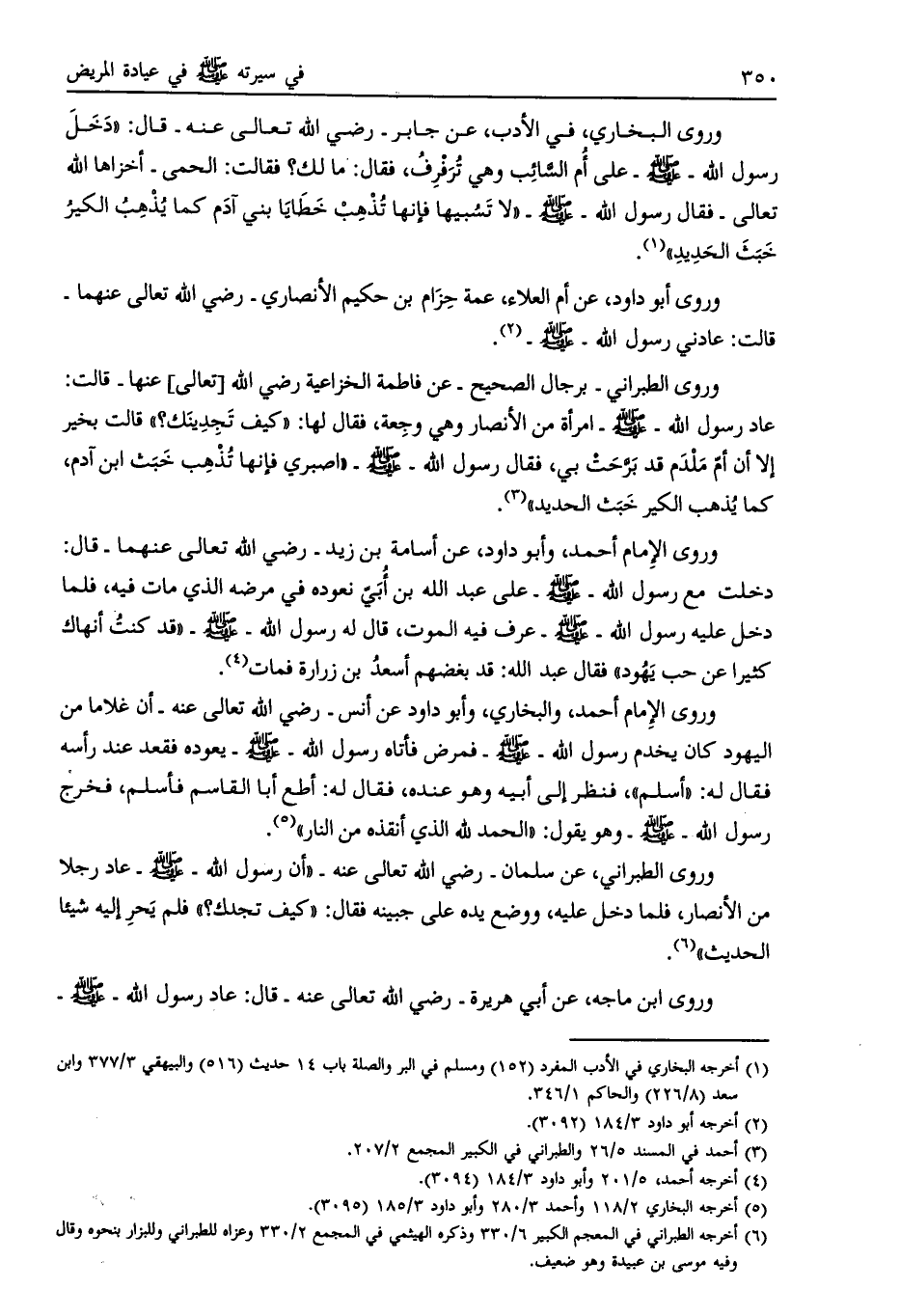 وروى ابن ماجة، عن أبي هريرة- رضي الله تعالى عنه- قال: عاد رسول الله- صلى الله عليه وسلّم-