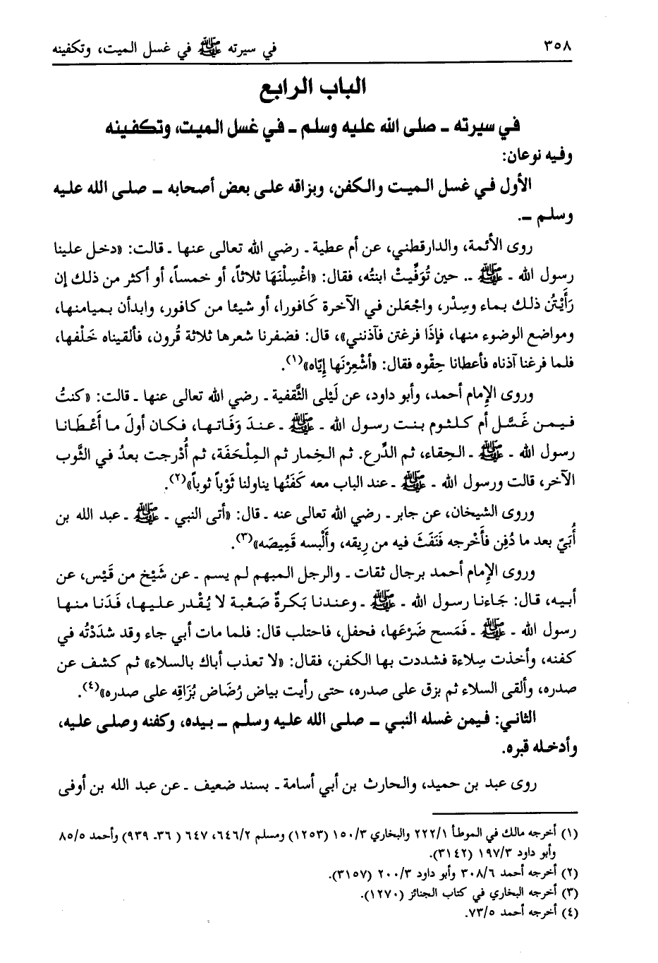 الباب الرابع في سيرته- صلّى الله عليه وسلم- في غسل الميت، وتكفينه