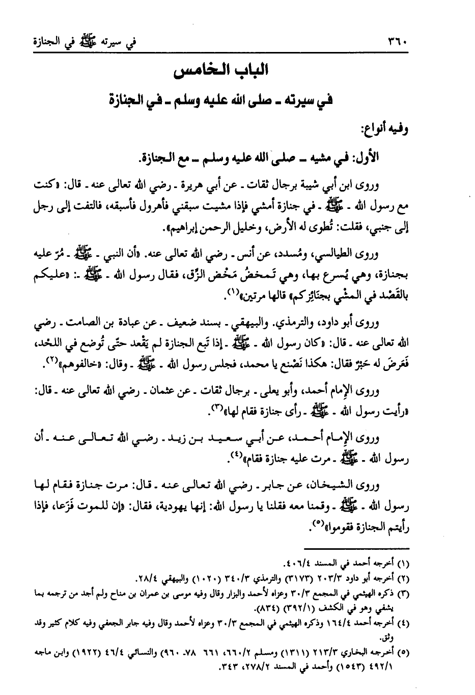 الأول: في مشيه- صلّى الله عليه وسلم- مع الجنازة.