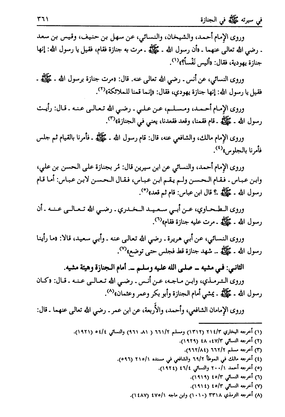 الثاني: في مشيه- صلّى الله عليه وسلم-. أمام الجنازة وهيئة مشيه.