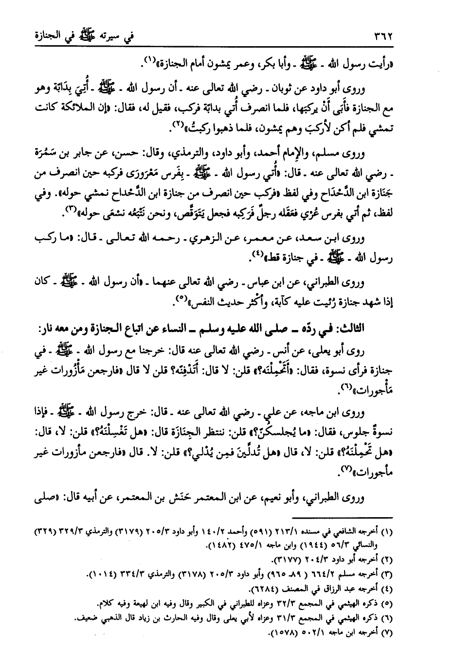 وروى ابن سعد، عن معمر، عن الزهري- رحمه الله تعالى- قال: «ما ركب رسول الله- صلى الله عليه وسلّم- في جنازة قط» [ (4) ] .