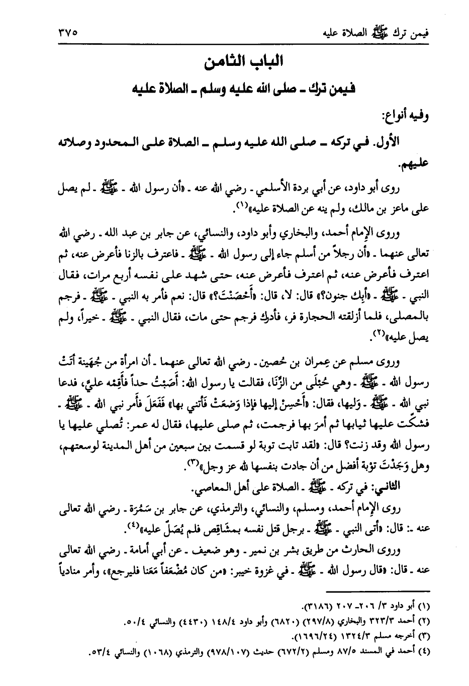 الأول. في تركه- صلى الله عليه وسلّم- الصلاة على المحدود وصلاته عليهم.