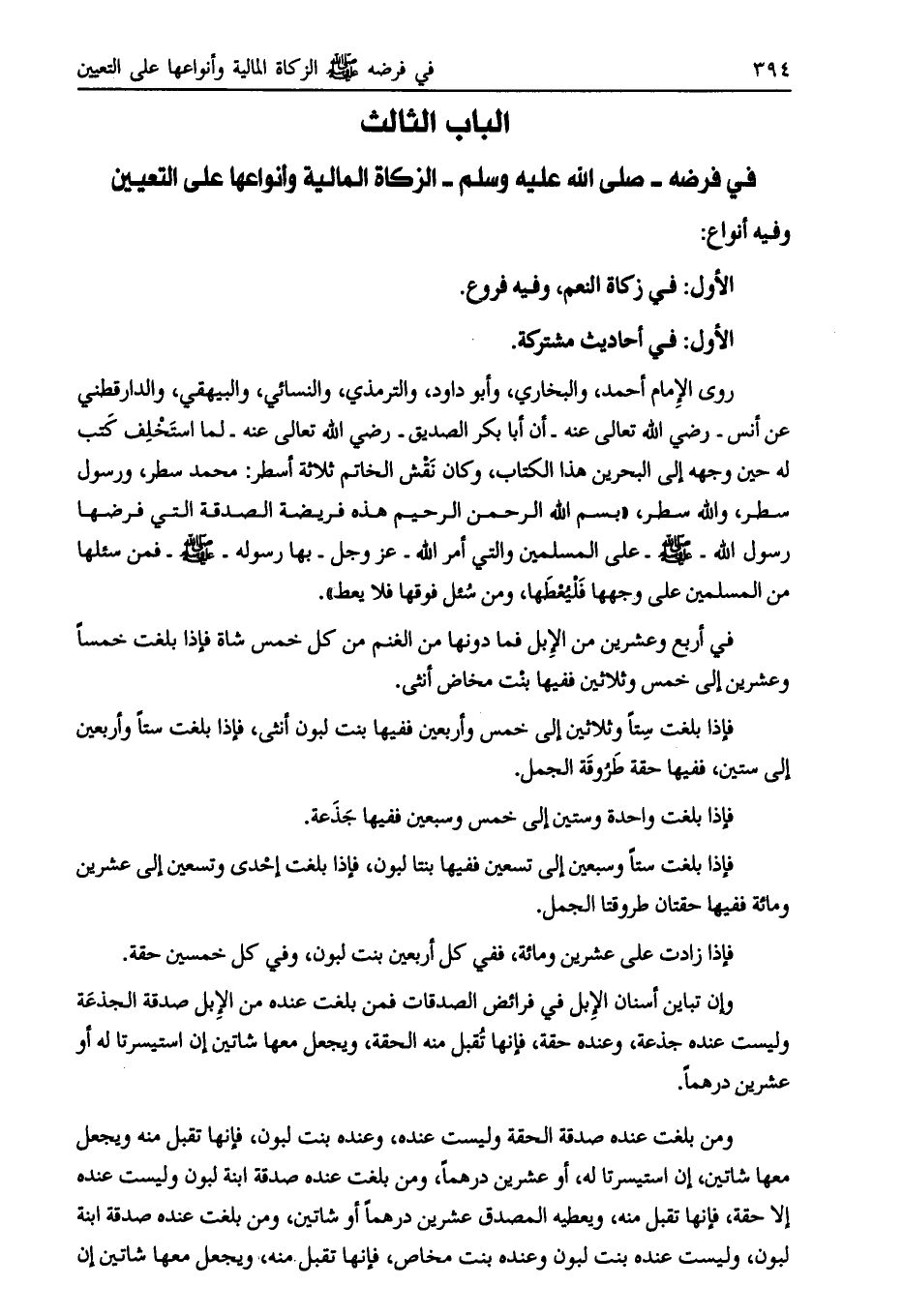 الباب الثالث في فرضه- صلى الله عليه وسلّم- الزكاة المالية وأنواعها على التعيين