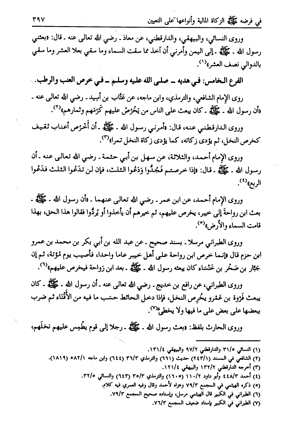 وروى الإمام أحمد، والثلاثة، عن سهل بن أبي حثمة- رضي الله تعالى عنه- أن رسول الله- صلى الله عليه وسلم- قال: «إذا خرصتم فجدّوا ودعوا الثلث، فإن لن تدعوا الثلث فدعوا الربع» [ (4) ] .