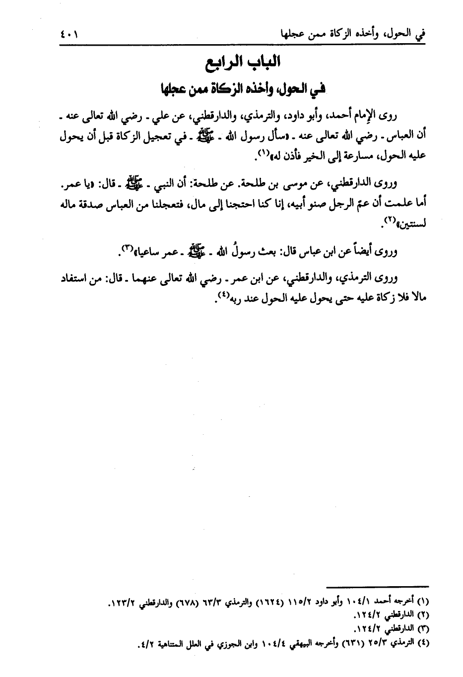 [ (1) ] أخرجه أحمد 1/ 104 وأبو داود 2/ 115 (1624) والترمذي 3/ 63 (678) والدارقطني 2/ 123.
