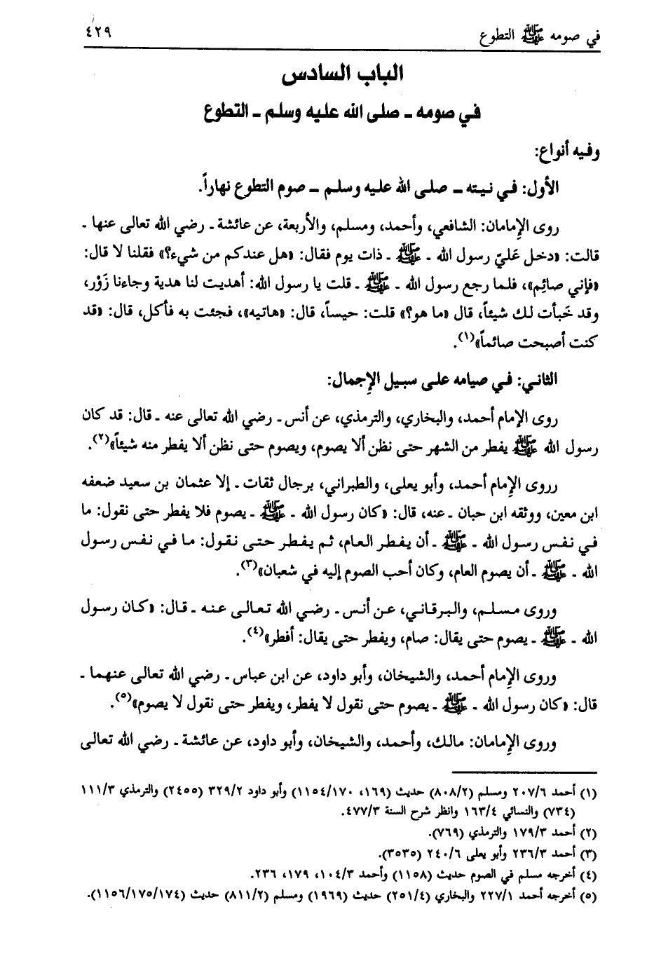 الباب السادس في صومه- صلّى الله عليه وسلّم- التطوع