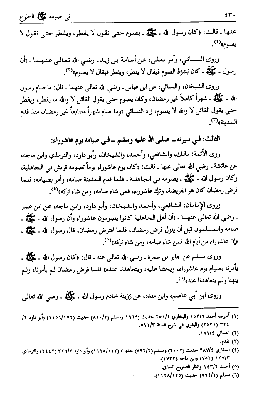 [ (4) ] البخاري 4/ 287 حديث (2002) ومسلم (2/ 792) حديث (113/ 1125) وأبو داود 2/ 326 (2442) والترمذي 3/ 127 (753) وابن ماجة (1733) .