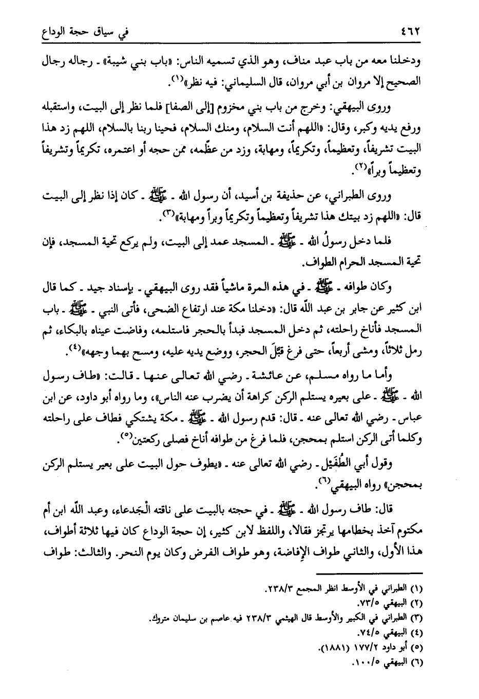 وقول أبي الطفيل- رضي الله تعالى عنه- «يطوف حول البيت على بعير يستلم الركن بمحجن» رواه البيهقي [ (6) ] .