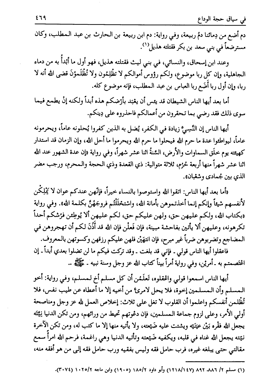 [ (1) ] مسلم 2/ 886- 892 (147/ 1218) وأبو داود 2/ 185 (1905) وابن ماجة 2/ 1025 (3074) .