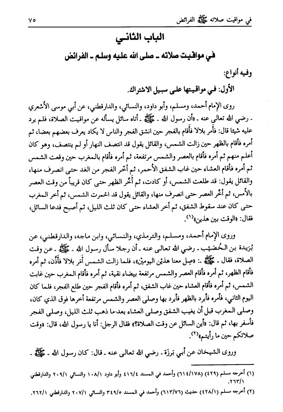 الباب الثاني في مواقيت صلاته- صلّى الله عليه وسلّم- الفرائض