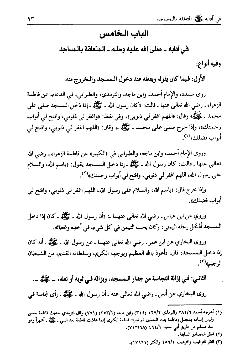 الباب الخامس في آدابه- صلّى الله عليه وسلّم- المتعلقة بالمساجد
