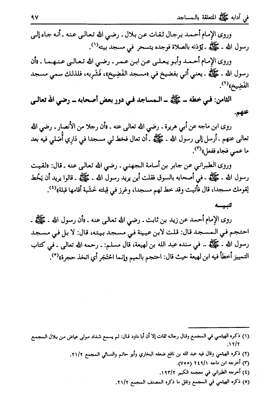 الثامن: في خطه- صلى الله عليه وسلّم- المساجد في دور بعض أصحابه- رضي الله تعالى عنهم.