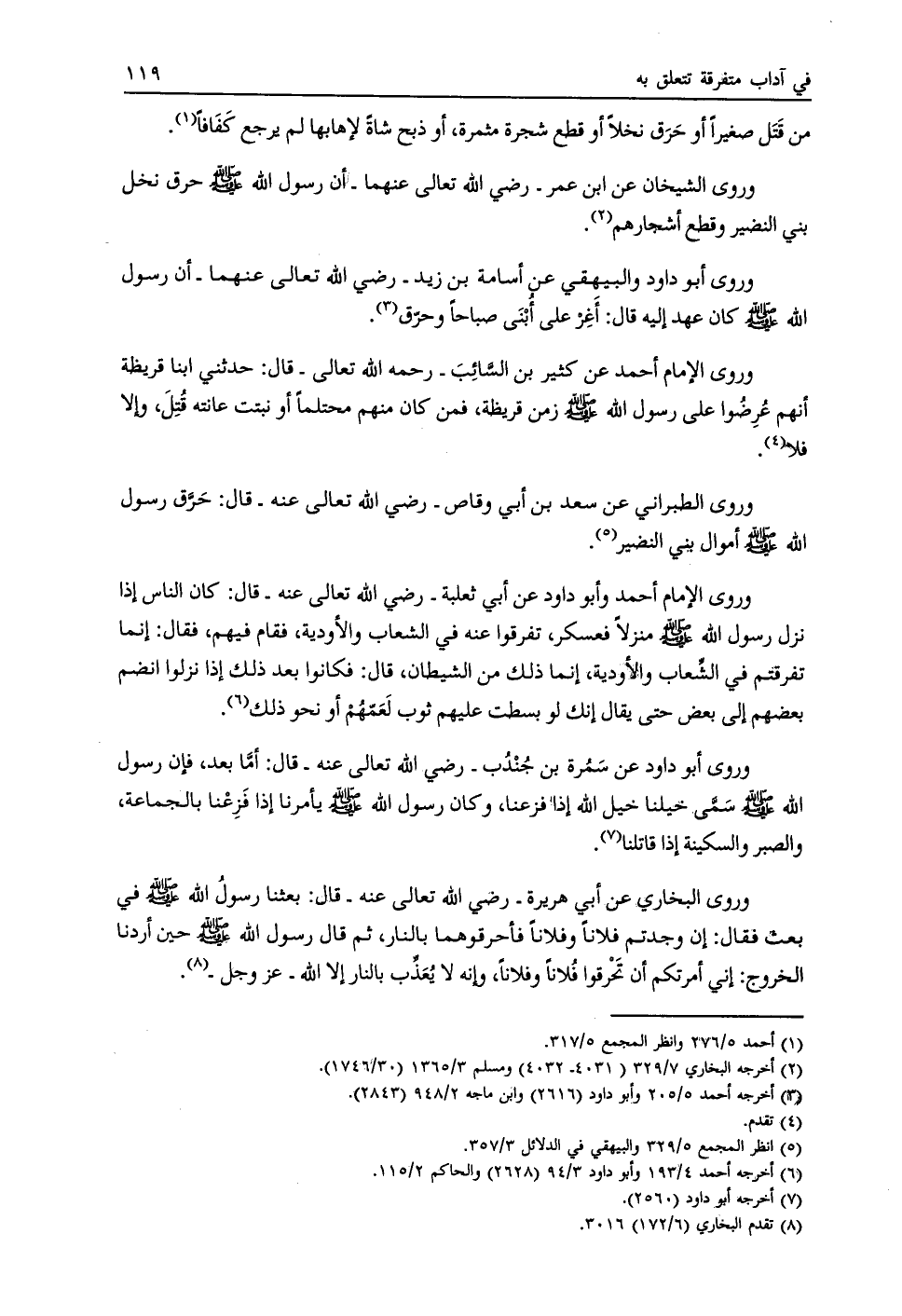 وروى أبو داود والبيهقي عن أسامة بن زيد- رضي الله تعالى عنهما- أن رسول الله صلى الله عليه وسلم كان عهد إليه قال: أغر على أبنى صباحا وحرّق [ (3) ] .