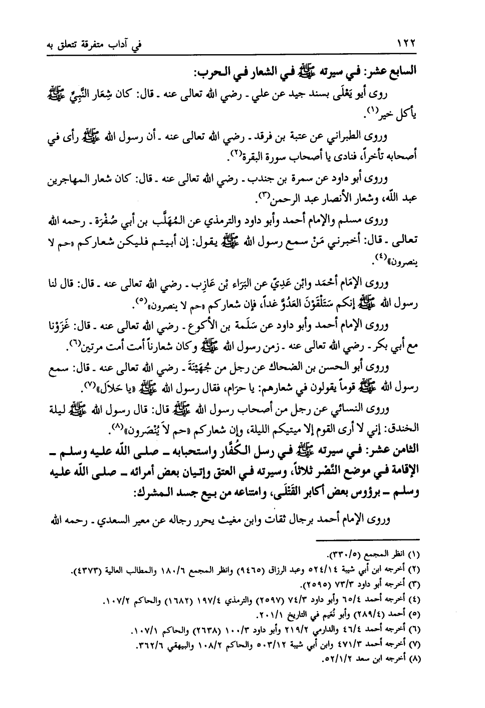 السابع عشر: في سيرته صلّى الله عليه وسلم في الشعار في الحرب: