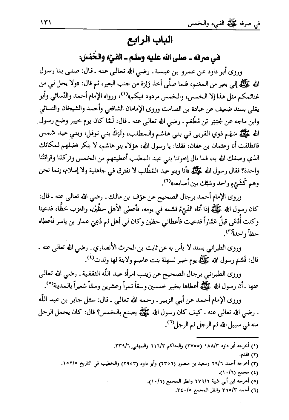 الباب الرابع في صرفه- صلى الله عليه وسلم- الفيء والخمس: