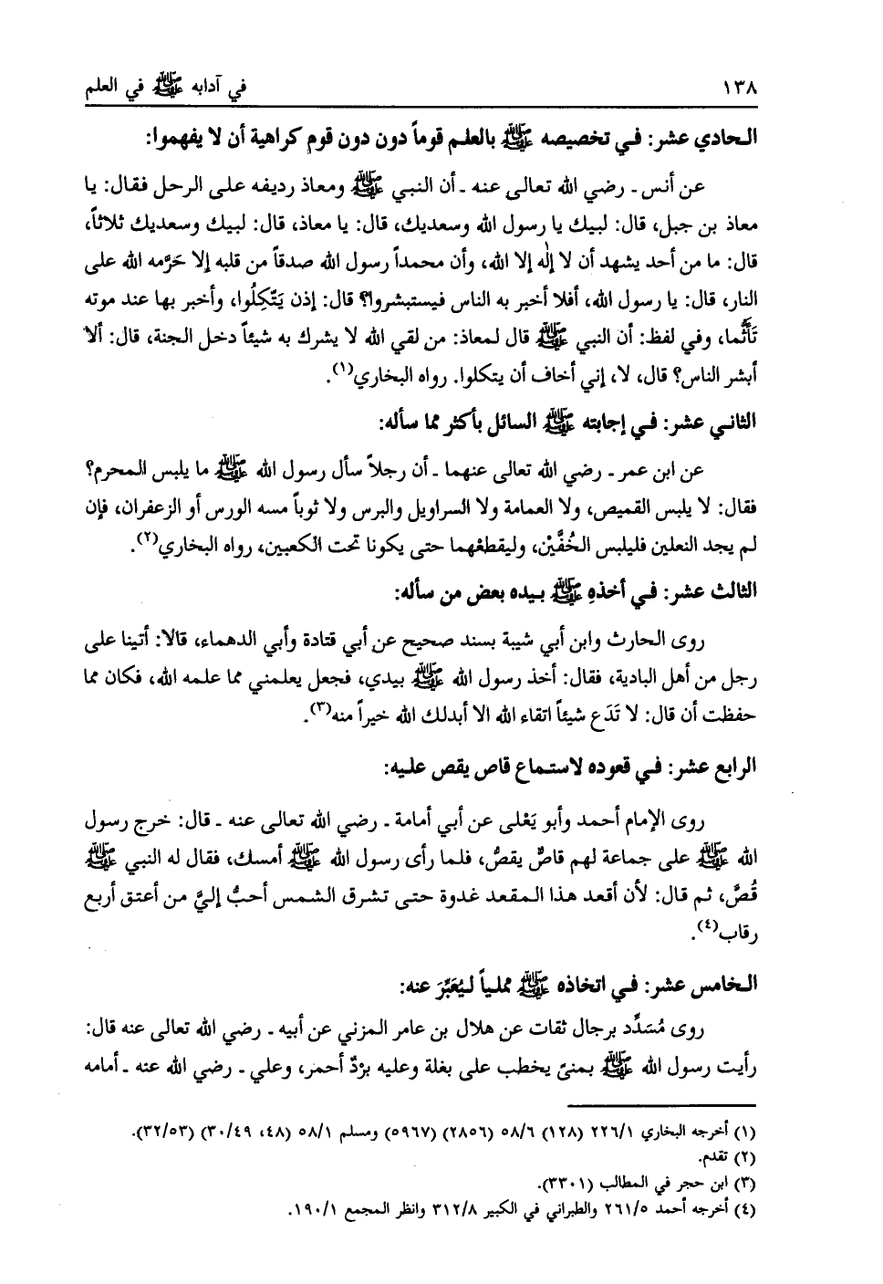[ (1) ] أخرجه البخاري 1/ 226 (128) 6/ 58 (2856) (5967) ومسلم 1/ 58 (48، 49/ 30) (53/ 32) .