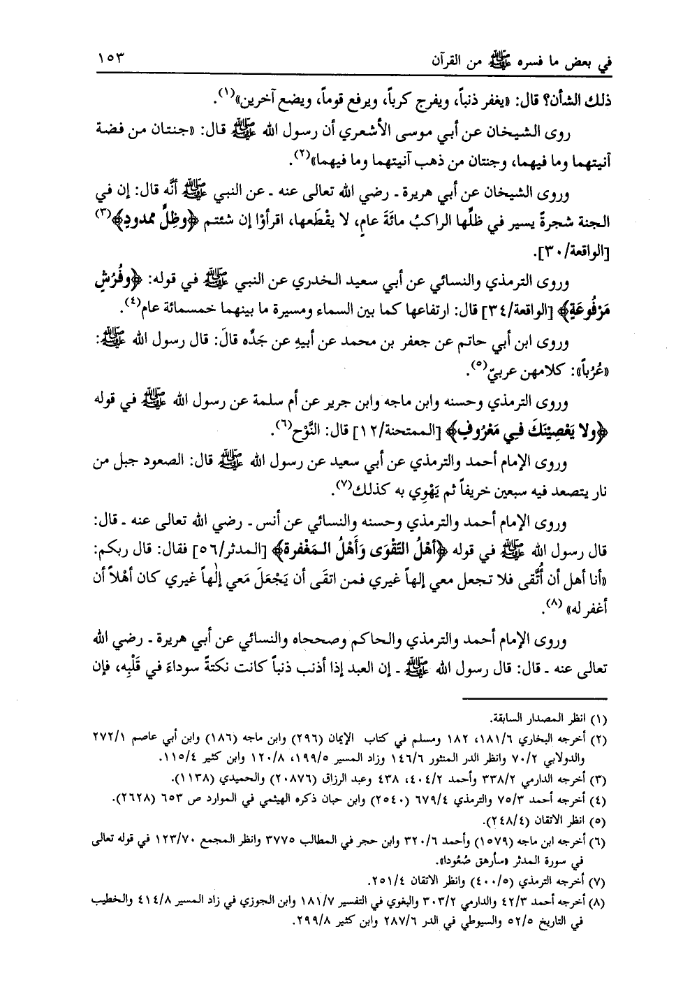[ (8) ] أخرجه أحمد 3/ 42 والدارمي 2/ 303 والبغوي في التفسير 7/ 181 وابن الجوزي في زاد المسير 8/ 414 والخطيب في التاريخ 5/ 52 والسيوطي في الدر 6/ 287 وابن كثير 8/ 299.