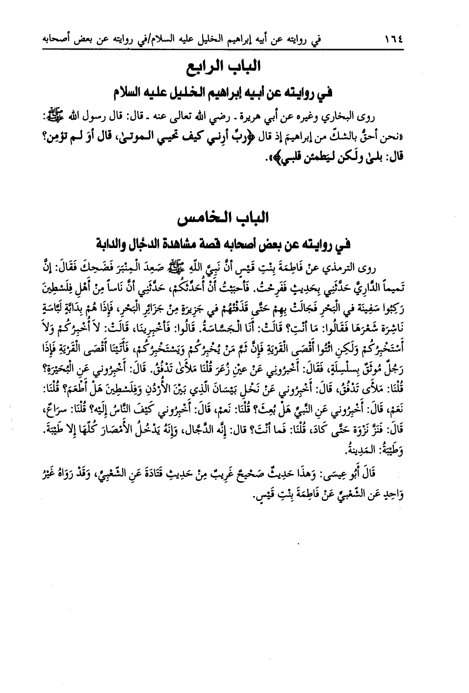 الباب الخامس في روايته عن بعض أصحابه قصة مشاهدة الدجّال والدابة
