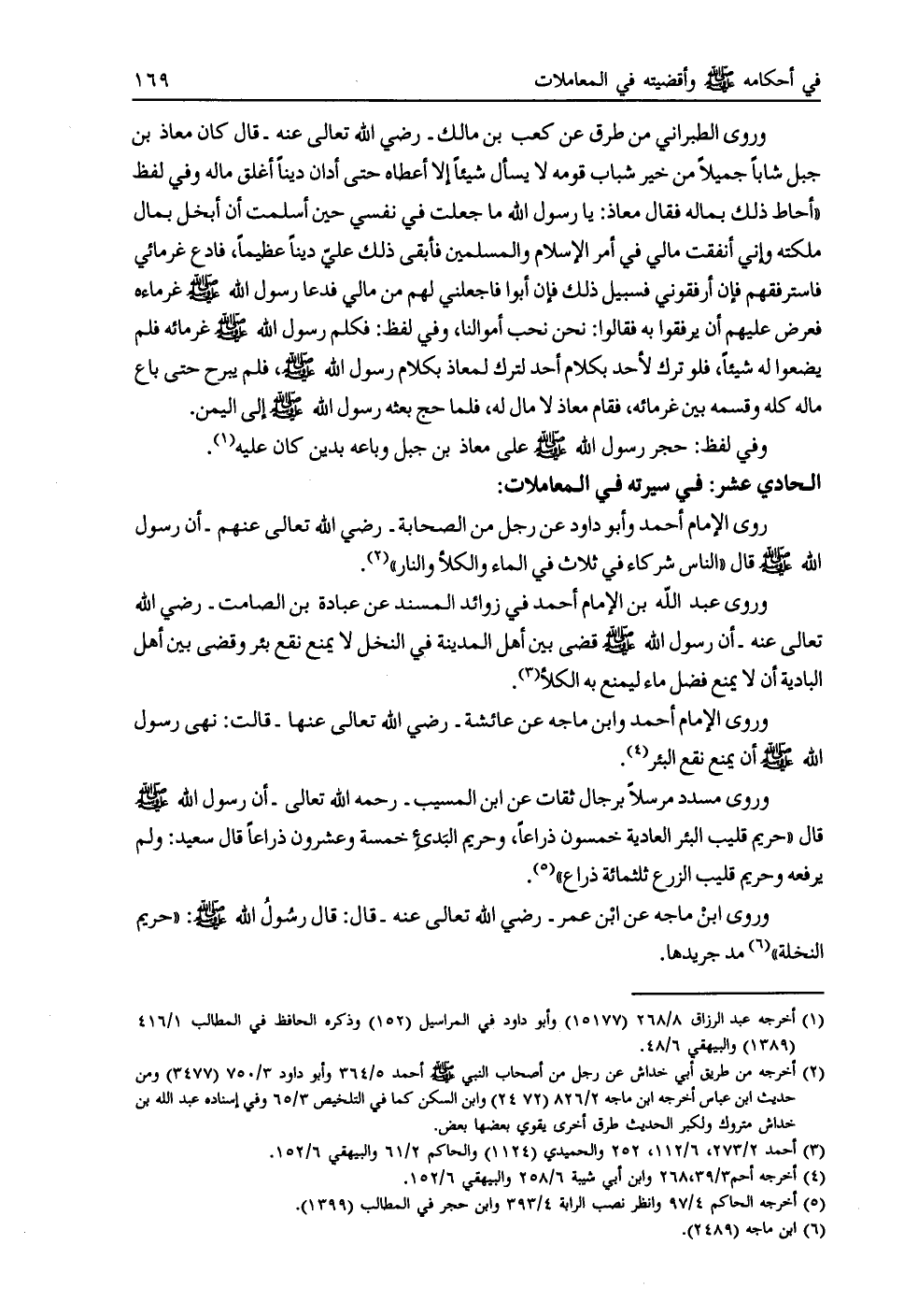 روى الإمام أحمد وأبو داود عن رجل من الصحابة- رضي الله تعالى عنهم- أن رسول الله صلى الله عليه وسلم قال «الناس شركاء في ثلاث في الماء والكلأ والنار» [ (2) ] .