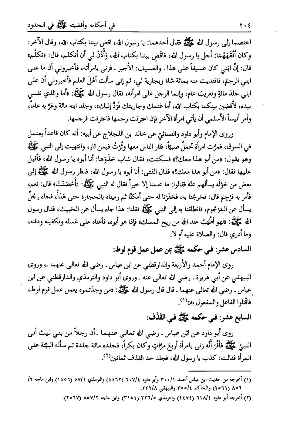 [ (1) ] أخرجه من حديث ابن عباس أحمد 1/ 300 وأبو داود 4/ 607 (4462) والترمذي 4/ 57 (1456) وابن ماجة 2/ 856 (2561) والحاكم 4/ 355 والبيهقي 8/ 232.