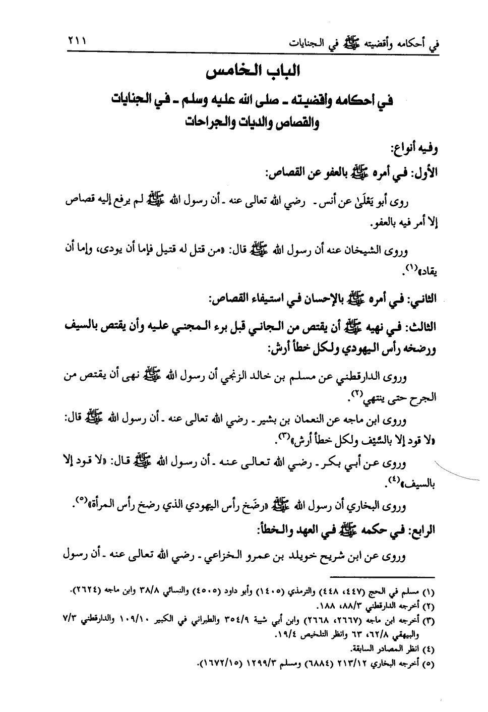 الباب الخامس في أحكامه وأقضيته- صلى الله عليه وسلم- في الجنايات والقصاص والدّيات والجراحات