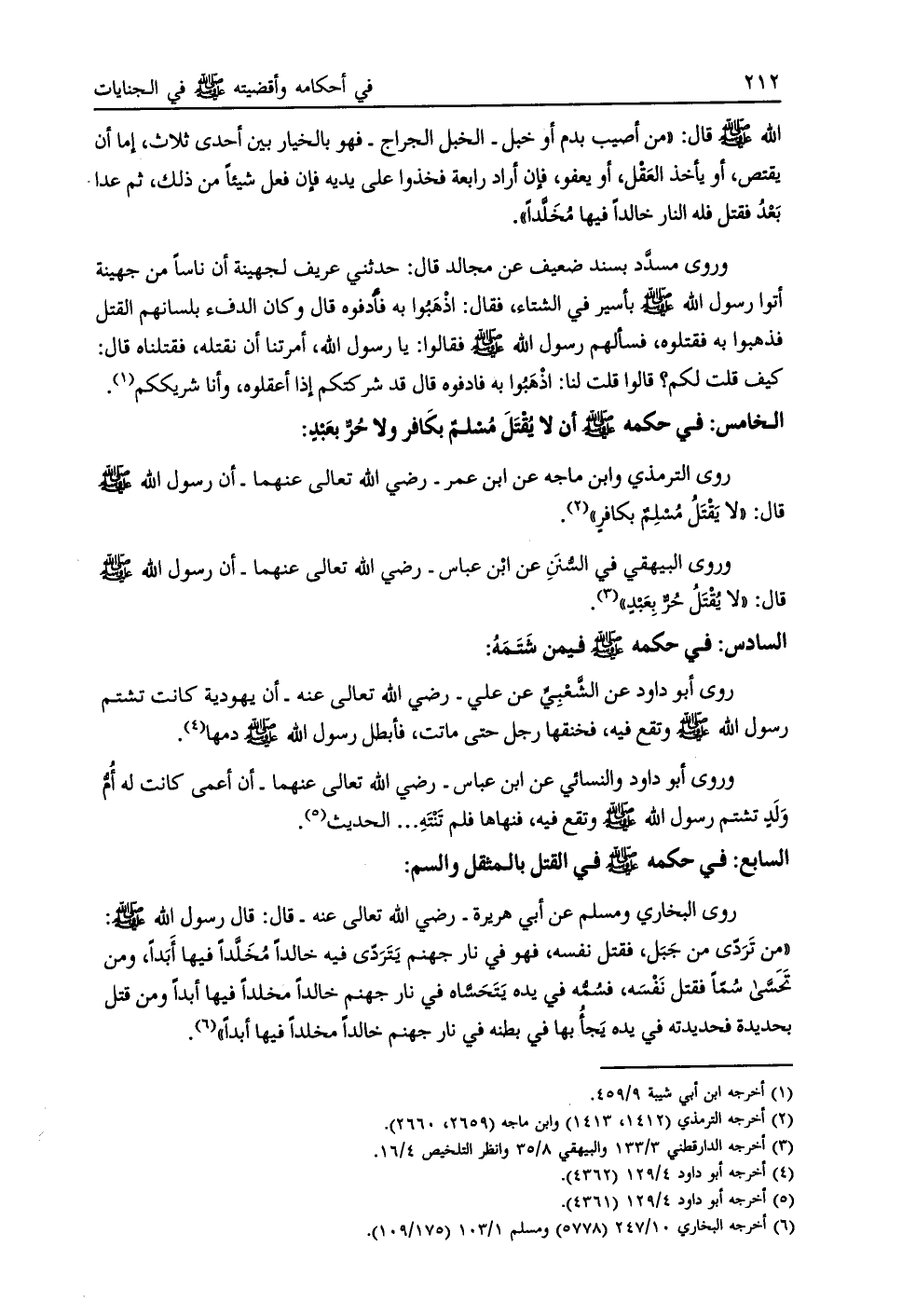 السابع: في حكمه صلى الله عليه وسلم في القتل بالمثقل والسم: