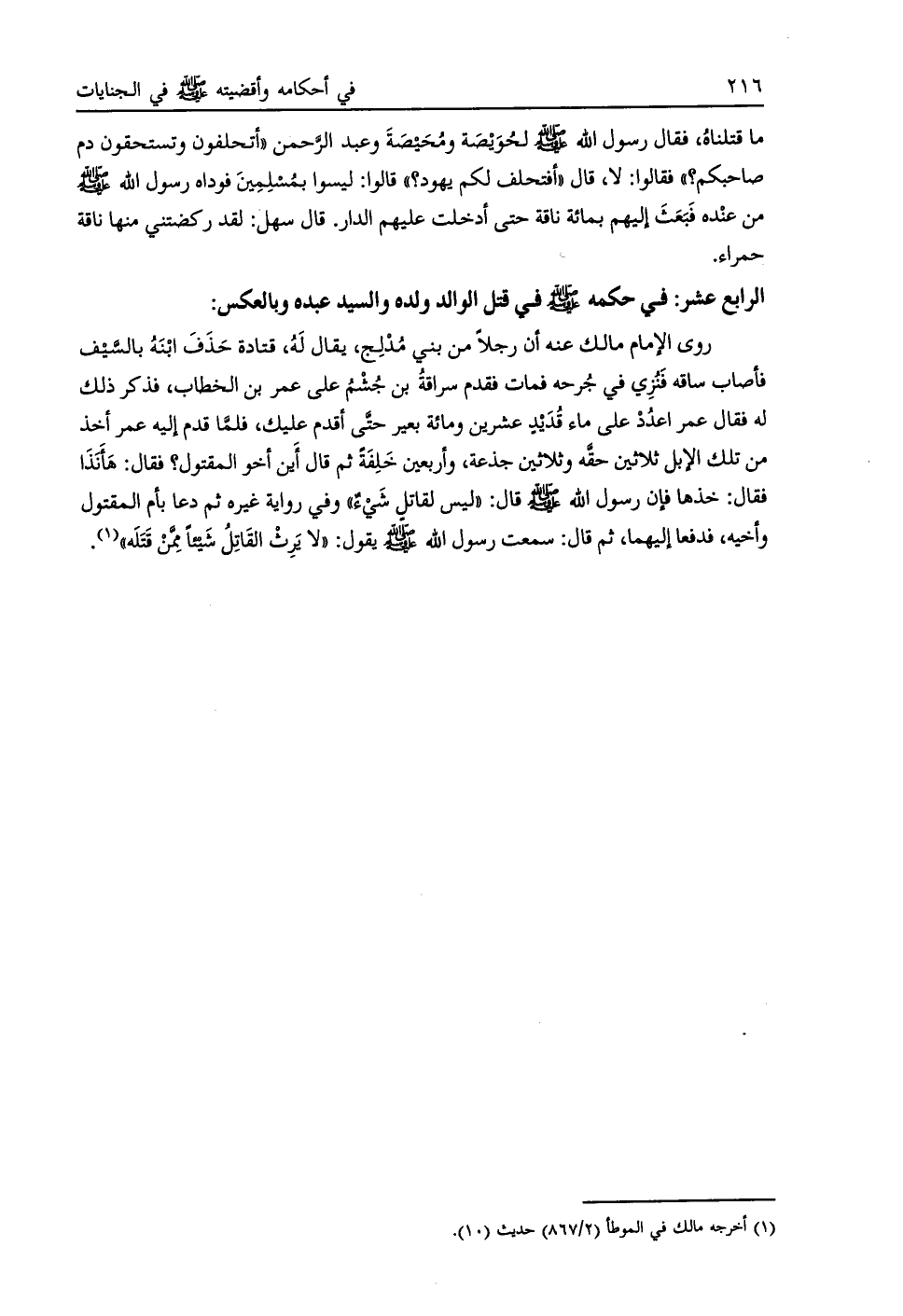 الرابع عشر: في حكمه صلى الله عليه وسلم في قتل الوالد ولده والسيد عبده وبالعكس:
