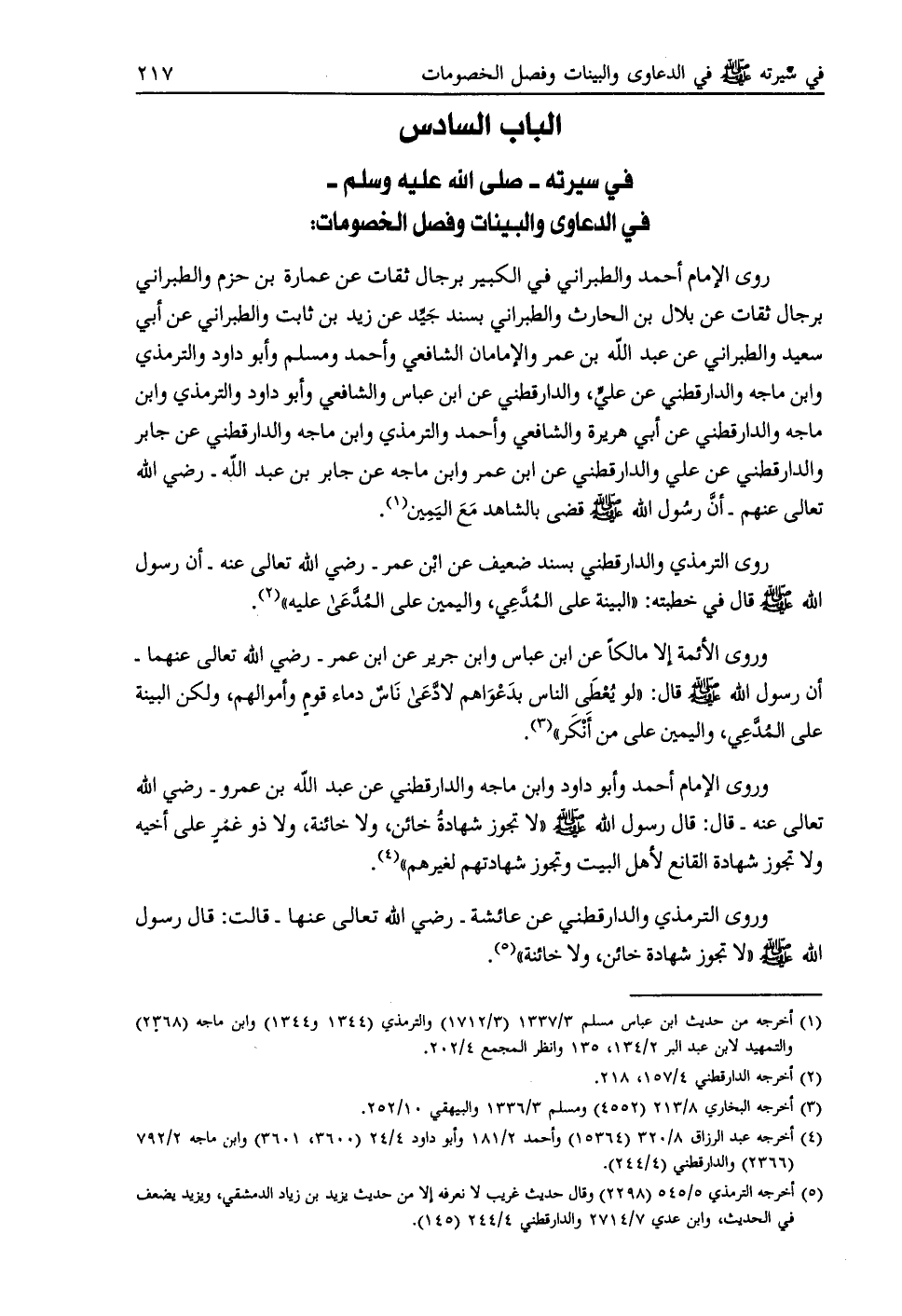 الباب السادس في سيرته- صلّى الله عليه وسلم- في الدعاوي والبينات وفصل الخصومات: