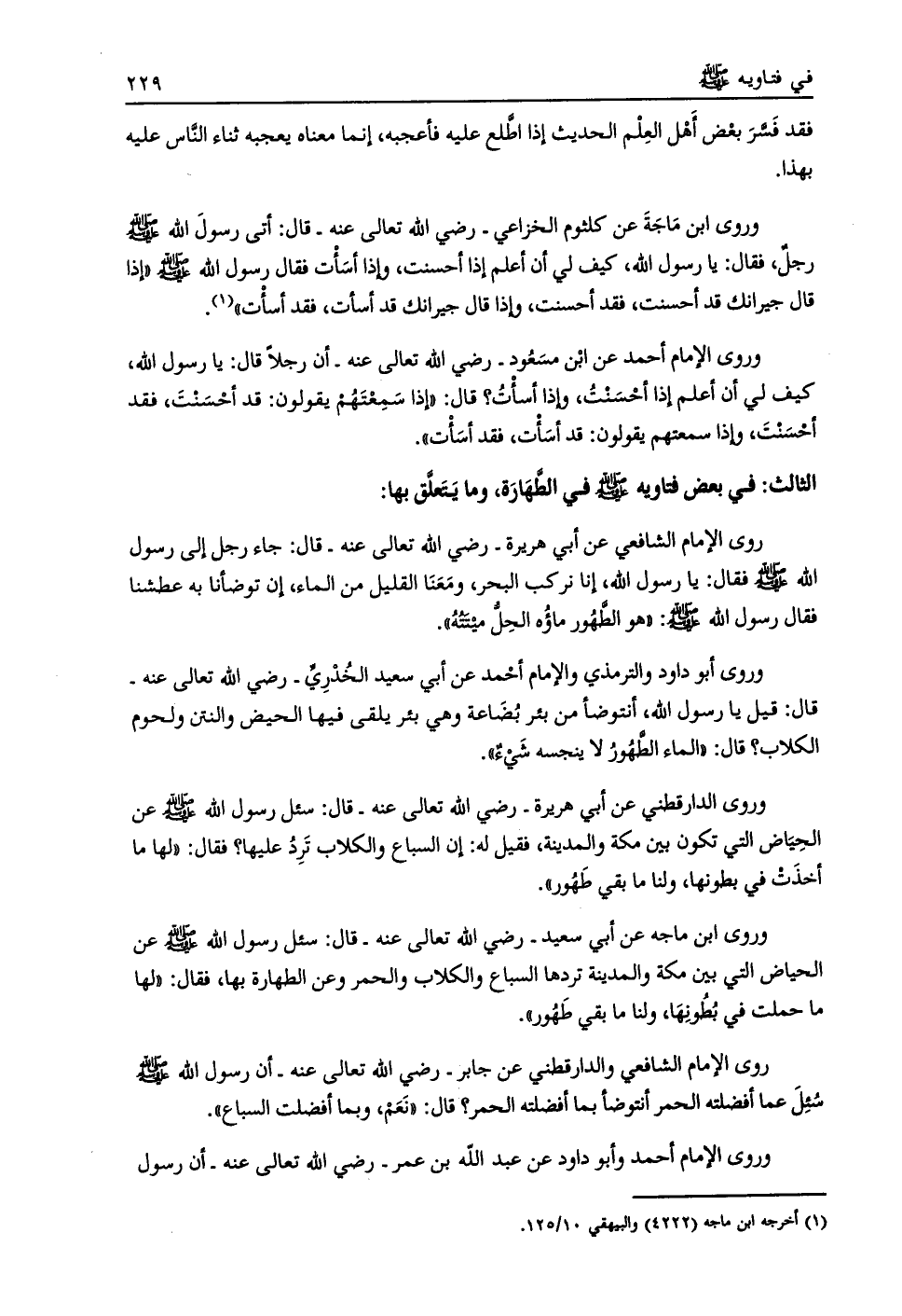الثالث: في بعض فتاويه صلّى الله عليه وسلم في الطّهارة، وما يتعلق بها:
