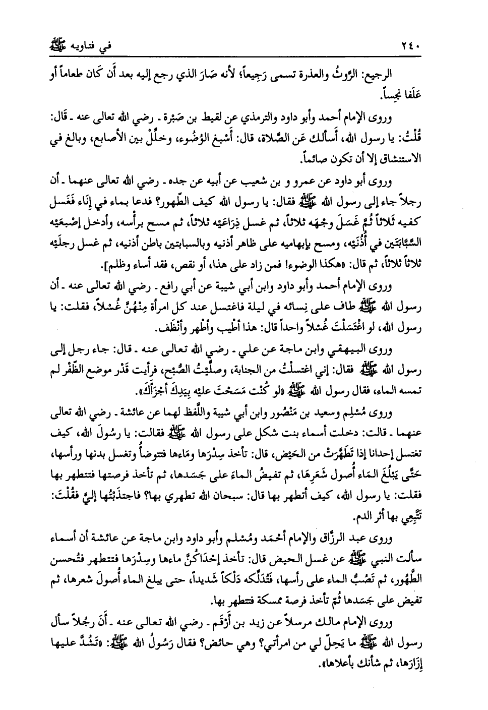 وروى الإمام أحمد وأبو داود والترمذي عن لقيط بن صبرة- رضي الله تعالى عنه- قال: قلت: يا رسول الله، أسألك عن الصلاة، قال: أسبغ الوضوء، وخلّل بين الأصابع، وبالغ في الاستنشاق إلا أن تكون صائما.