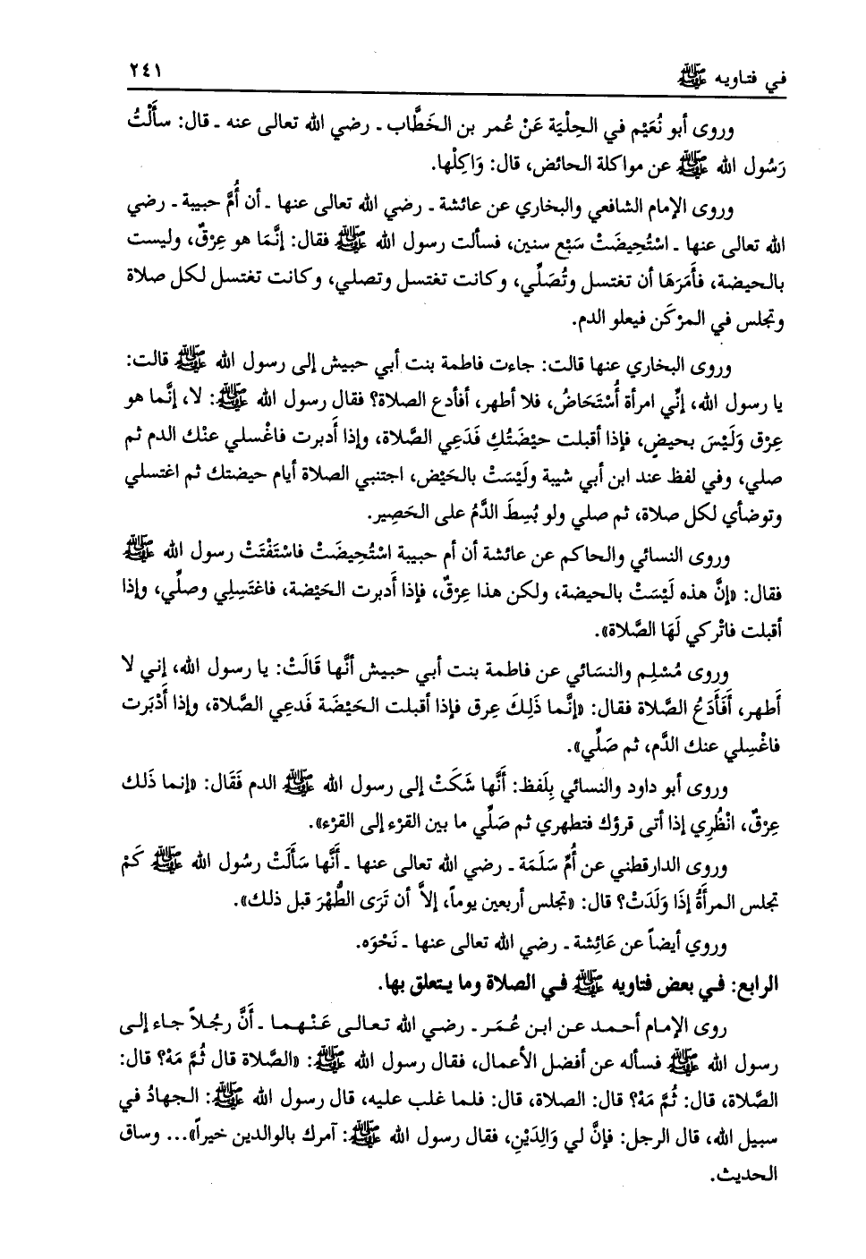الرابع: في بعض فتاويه صلّى الله عليه وسلم في الصلاة وما يتعلق بها.