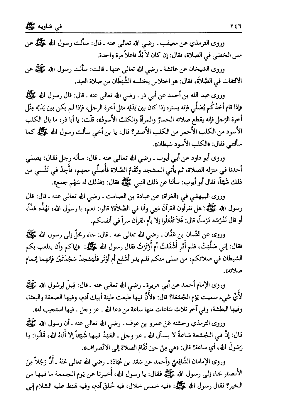 وروى الترمذي وحسنه عن عمرو بن عوف- رضي الله تعالى عنه- أن رسول الله صلى الله عليه وسلم قال: إن في الجمعة ساعة لا يسأل الله- عز وجل- العبد فيها شيئا إلا أتاه الله، قالوا: يا رسول الله، أي ساعة؟ قال: «هي من حين تقام الصلاة إلى الانصراف» .