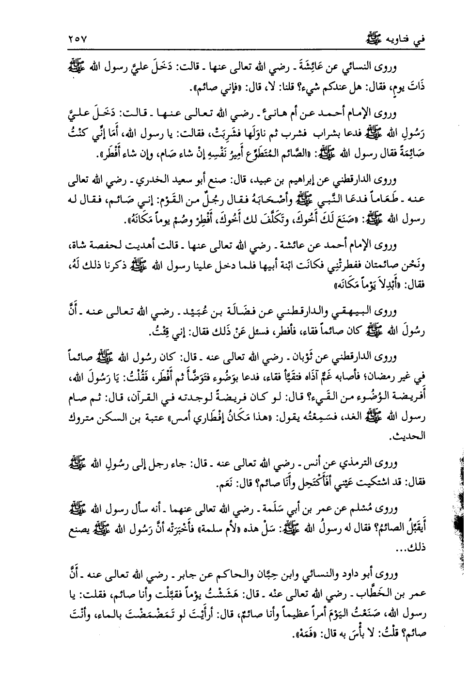 وروى البيهقي والدارقطني عن فضالة بن عبيد- رضي الله تعالى عنه- أن رسول الله صلى الله عليه وسلم كان صائما فقاء، فأفطر، فسئل عن ذلك فقال: إني قئت.