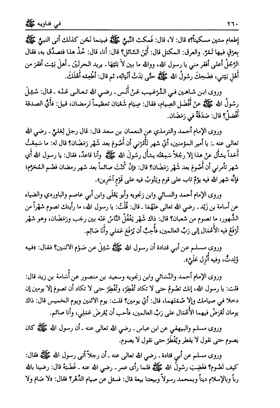 وروى مسلم والبيهقي عن ابن عباس- رضي الله تعالى عنه- أن رسول الله صلى الله عليه وسلم كان يصوم حتى نقول لا يفطر ويفطر حتى نقول لا يصوم.