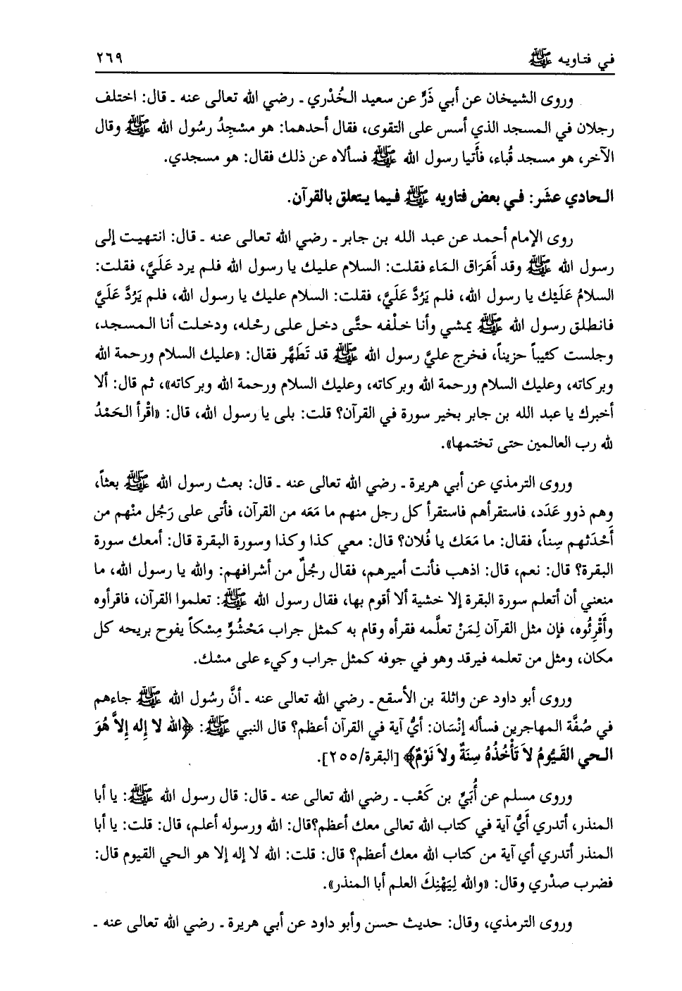 الحادي عشر: في بعض فتاويه صلّى الله عليه وسلم فيما يتعلق بالقرآن.