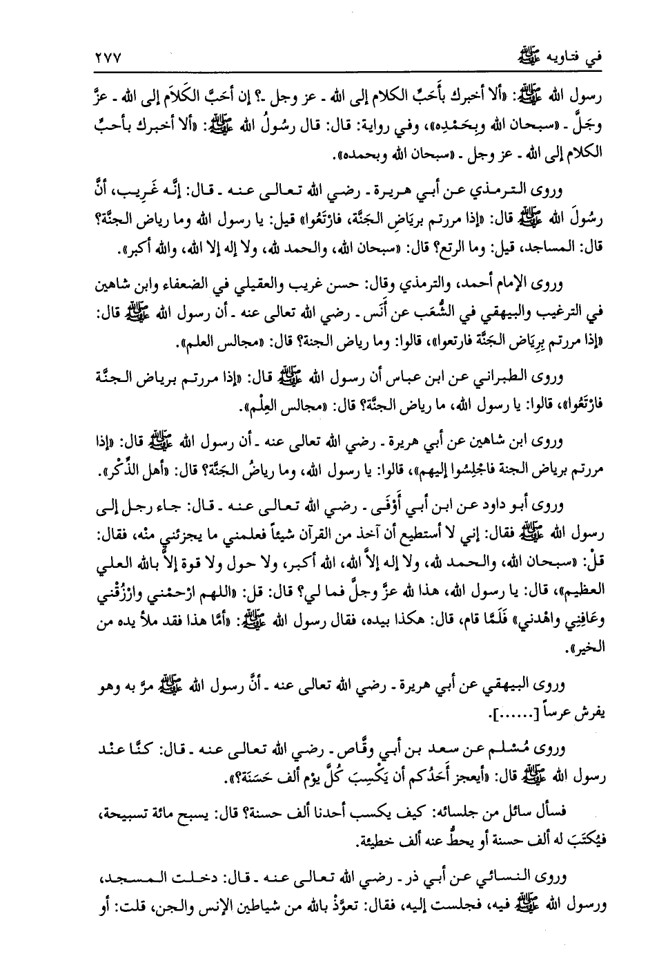 رسول الله صلى الله عليه وسلم: «ألا أخبرك بأحبّ الكلام إلى الله- عز وجل-؟ إن أحبّ الكلام إلى الله- عز وجلّ- «سبحان الله وبحمده» ،