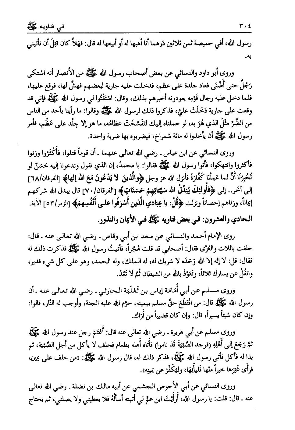 الحادي والعشرون: في بعض فتاويه صلّى الله عليه وسلم في الأيمان والنذور.