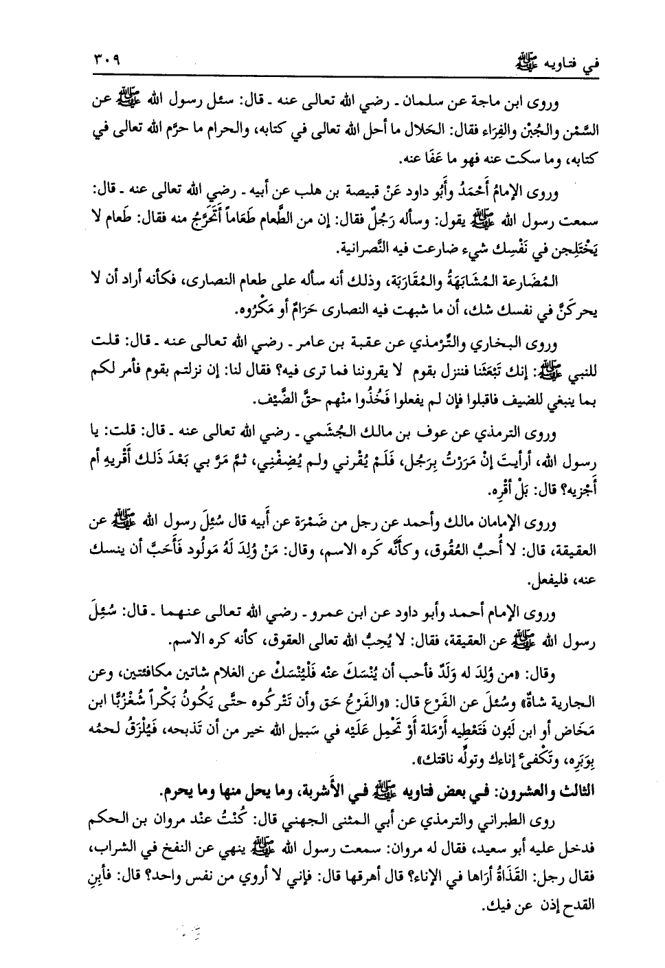 الثالث والعشرون: في بعض فتاويه صلّى الله عليه وسلم في الأشربة، وما يحل منها وما يحرم.