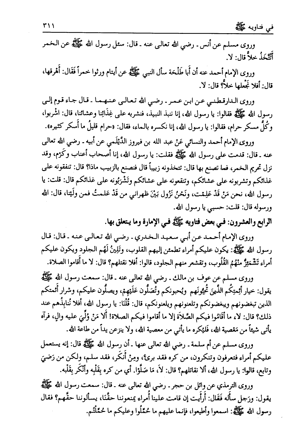 الرابع والعشرون: في بعض فتاويه صلّى الله عليه وسلم في الإمارة وما يتعلق بها.