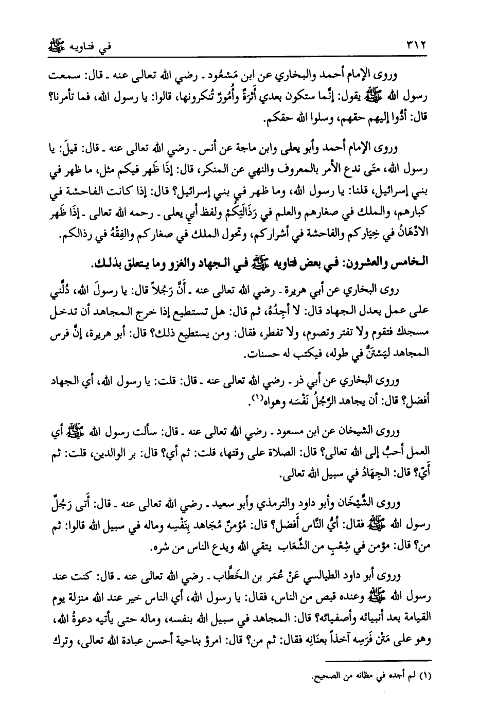 الخامس والعشرون: في بعض فتاويه صلّى الله عليه وسلم في الجهاد والغزو وما يتعلق بذلك.
