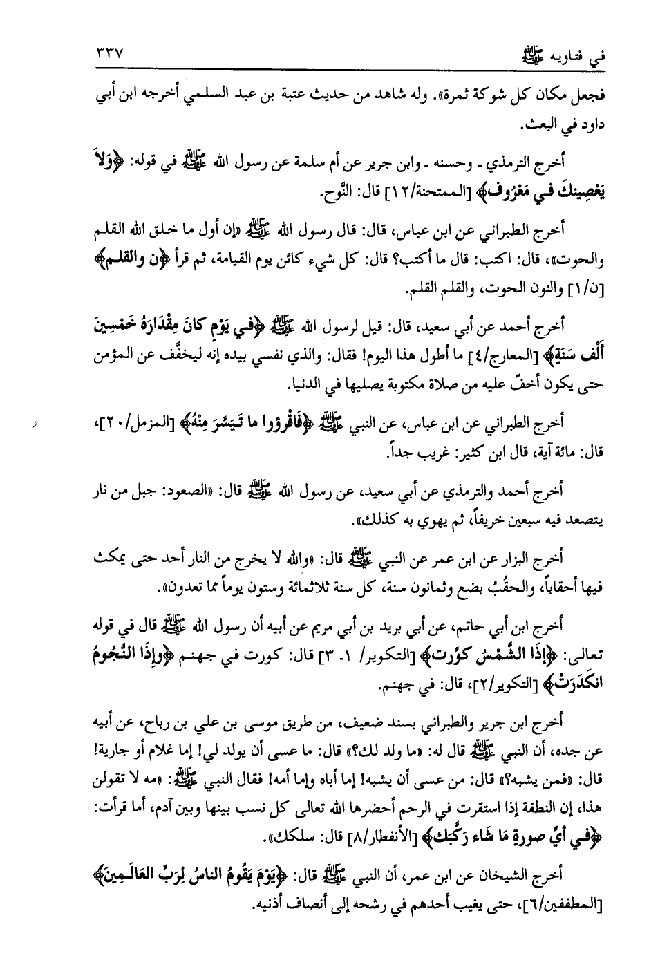 أخرج الترمذي- وحسّنه- وابن جرير عن أم سلمة عن رسول اللَّه صلى اللَّه عليه وسلم في قوله: وَلا يَعْصِينَكَ فِي مَعْرُوفٍ [الممتحنة/ 12] قال: النّوح.