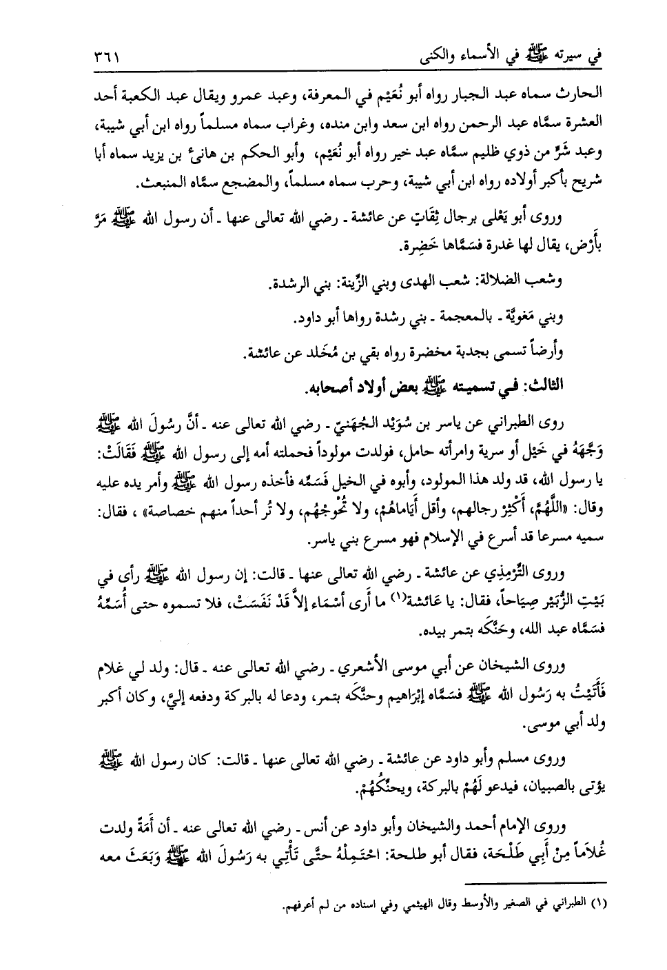 الثالث: في تسميته صلى اللَّه عليه وسلم بعض أولاد أصحابه.