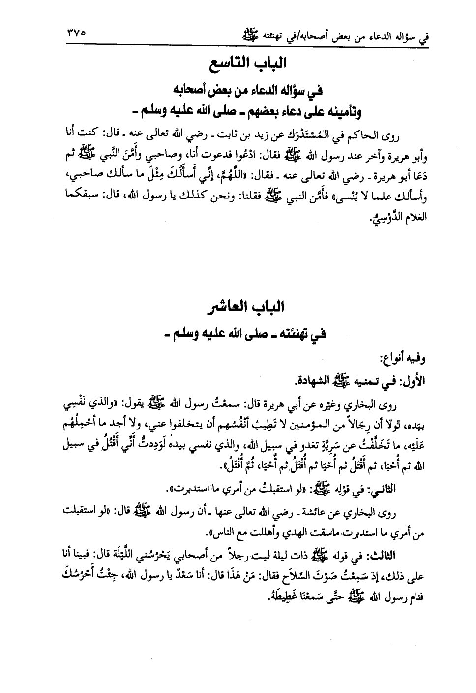 الباب التاسع في سؤاله الدعاء من بعض أصحابه وتأمينه على دعاء بعضهم- صلى اللَّه عليه وسلم-