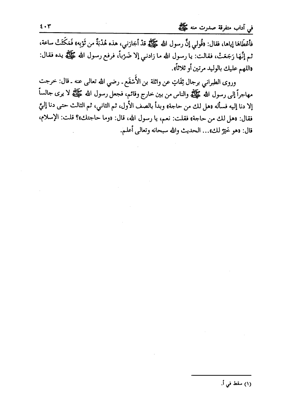 وروى الطبراني برجال ثقات عن واثلة بن الأسقع- رضي الله تعالى عنه- قال: خرجت مهاجرا إلى رسول الله صلى الله عليه وسلم والناس من بين خارج وقائم، فجعل رسول الله صلى الله عليه وسلم لا يرى جالسا إلا دنا إليه فسأله «هل لك من حاجة» وبدأ بالصف الأول، ثم الثاني، ثم الثالث حتى دنا إليّ فقال: «هل لك من حاجة» فقلت: نعم، يا رسول الله، قال: «وما حاجتك» ؟ قلت: الإسلام، قال: «هو خير لك» .