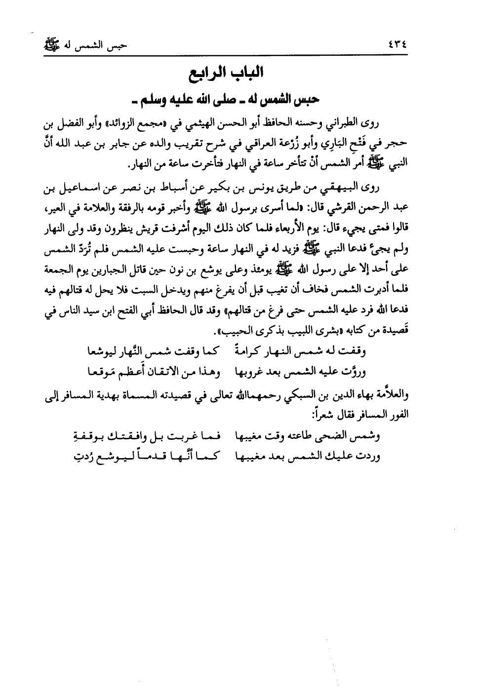 الباب الرابع حبس الشمس له- صلى الله عليه وسلم-