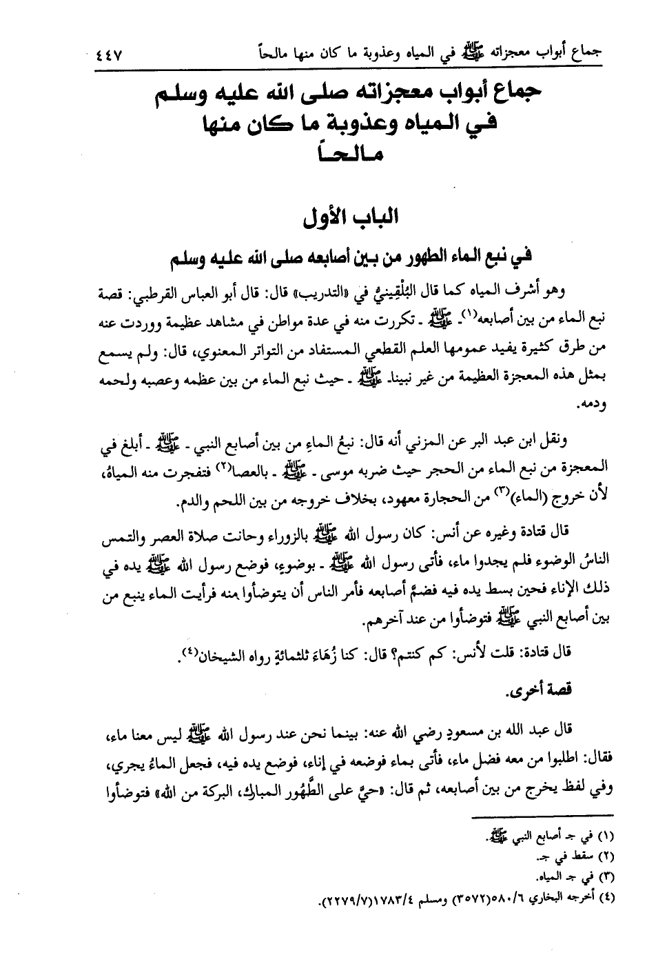الباب الأول في نبع الماء الطّهور من بين أصابعه صلى الله عليه وسلم