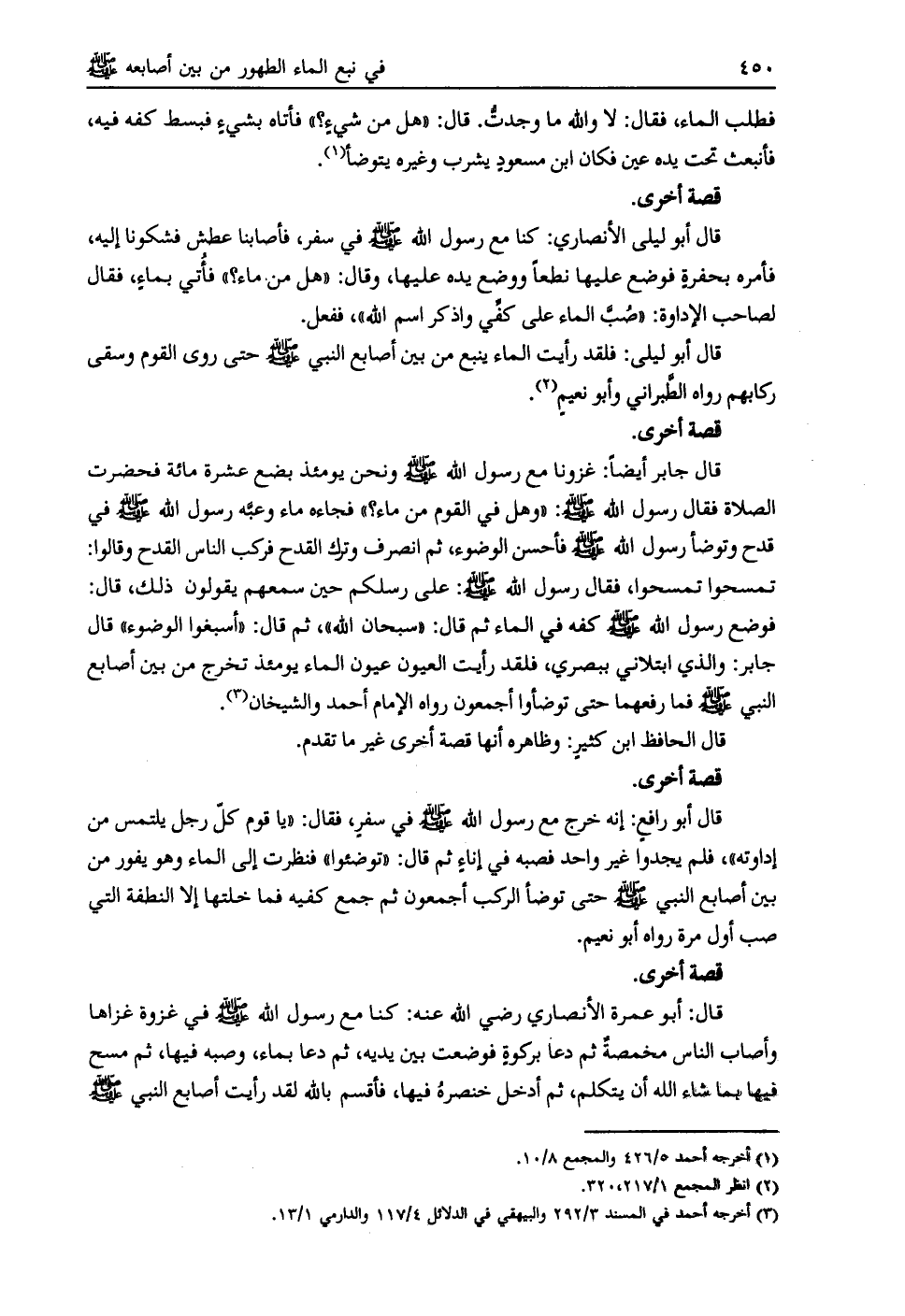 قال أبو ليلى: فلقد رأيت الماء ينبع من بين أصابع النبي صلى الله عليه وسلم حتى روى القوم وسقى ركابهم رواه الطبراني وأبو نعيم [ (2) ] .