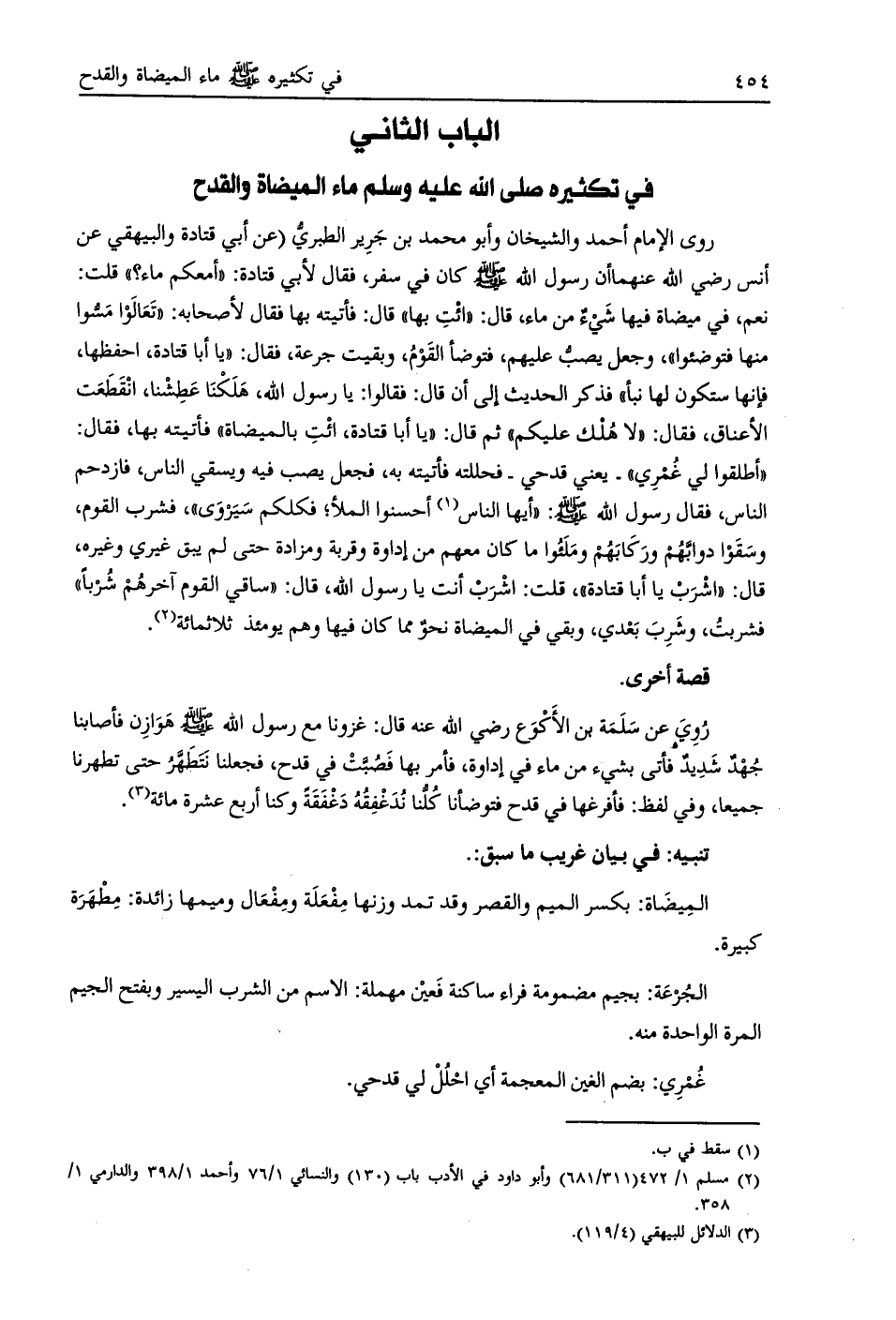 الباب الثاني في تكثيره صلى الله عليه وسلّم ماء الميضاة والقدح