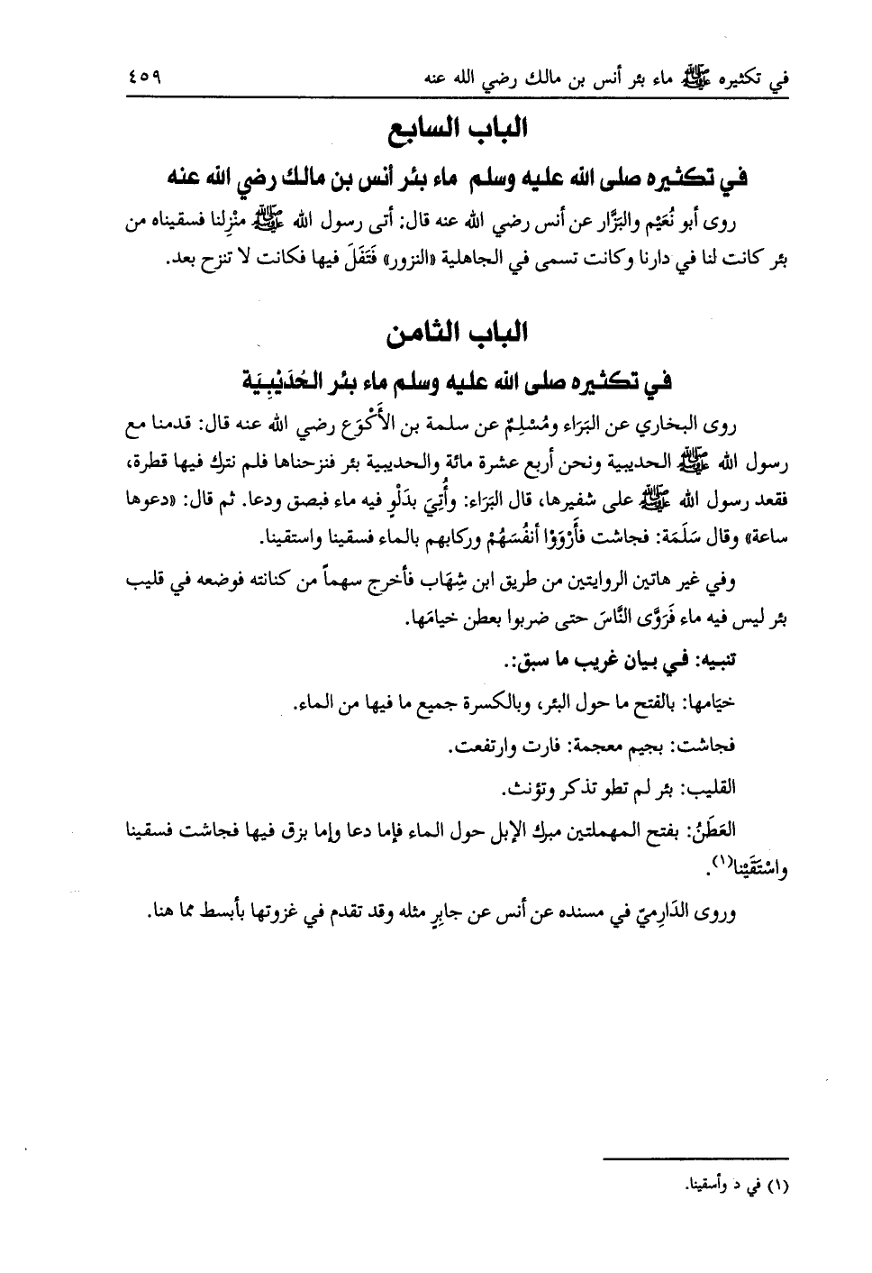 الباب السابع في تكثيره صلى الله عليه وسلّم ماء بئر أنس بن مالك رضي الله عنه